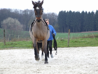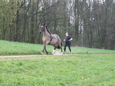 Hier sei gesagt, dass diese Bewegungsmethode von beiden Seiten ein großes Vertrauen voraussetzt. Für ein Reitpferd ist es eine neue Erfahrung alleine vorweg zu laufen und für den ehemaligen Reiter eine vollkommen neue Perspektive mit ca. 80 bis 100 cm Abstand hinter seinem Pferd her zu laufen.